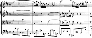 - Have students identify the melody and harmony lines – contrast and compare the 2nd violin line with the written bass part.