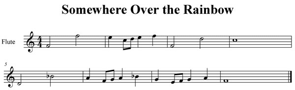 The pitches of "Somewhere Over the Rainbow" arranged in ascending order starting on the first note (F) form a seven-note scale (F, G, A, B♭, C, D, E, and F)—the F major scale: